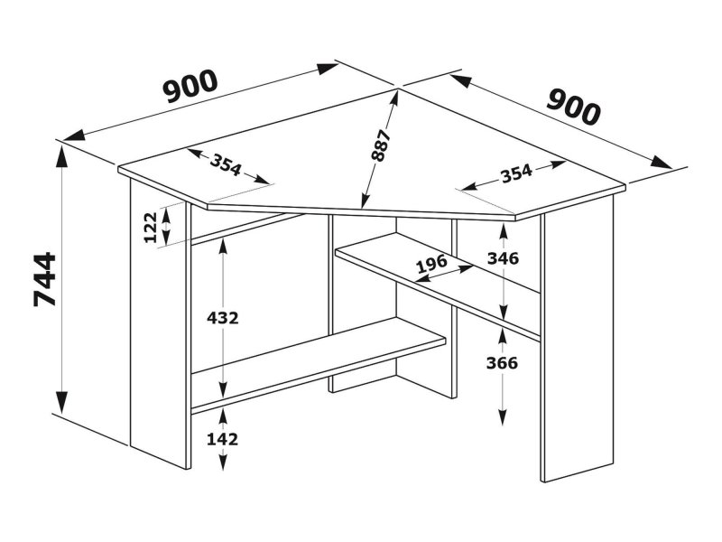 - Форма столешницы: Квадрат со скошенным углом